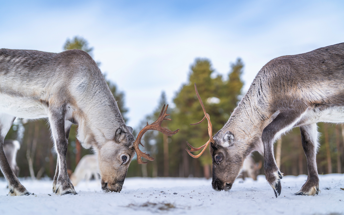 Kurzer Transfer zur nahegelegenen Rentier- Farm. Die Tiere erwarten Sie schon. Auf einer ca. 1km langen Schlittenfahrt können Sie die verschneiten Wälder bequem bewundern. Im Anschluss wird ein Heißgetränk am offenen Feuer serviert. Transfer zurück zum Hotel.